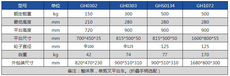 冠航牌小型手動單剪液壓升降平臺車貨物搬運車